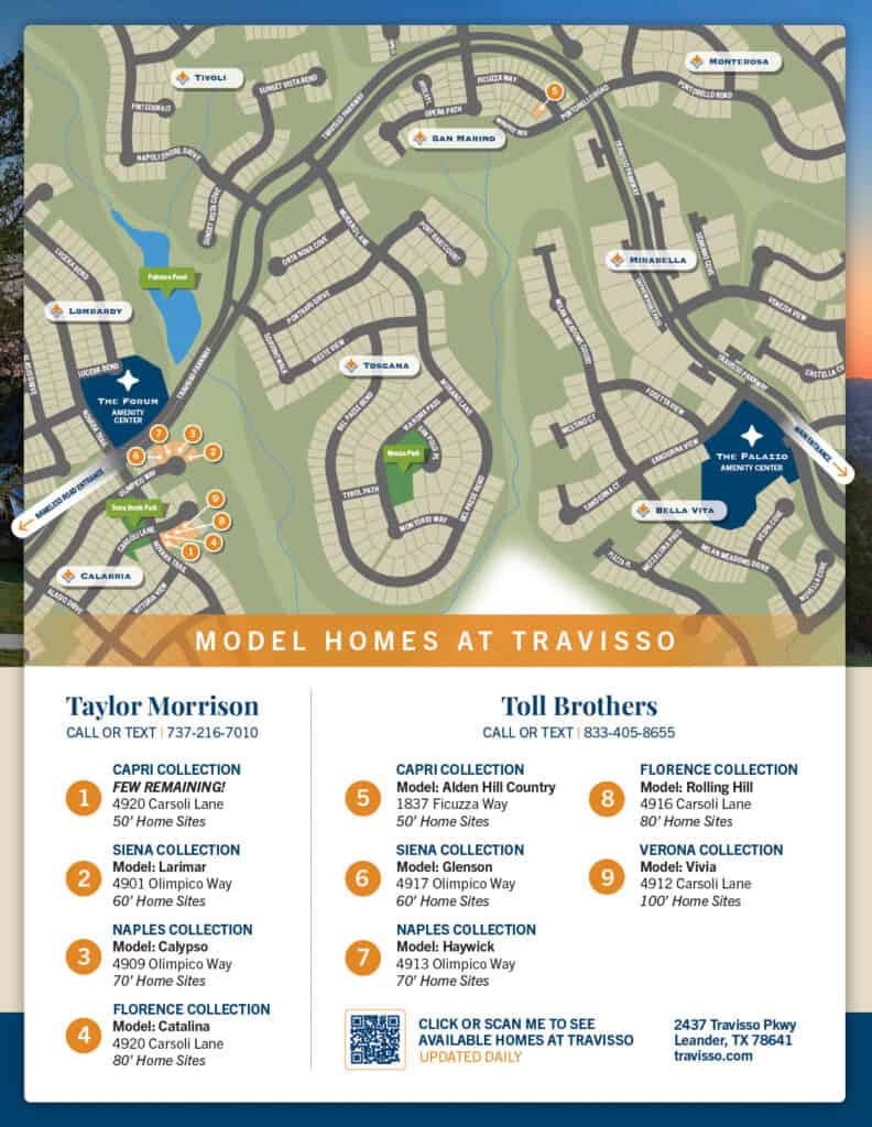 Seize the chance to experience these model homes firsthand. Travisso invites you to step inside, allowing you to fully immerse yourself in the essence of our community. We can’t wait to welcome you to Travisso, where your exciting new journey awaits. Come and make yourself at home today!